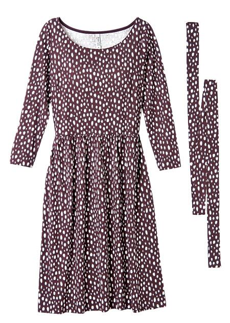 細かなドット柄をプリントしたギャザードレス。大人でも着やすい膝丈がうれしい。