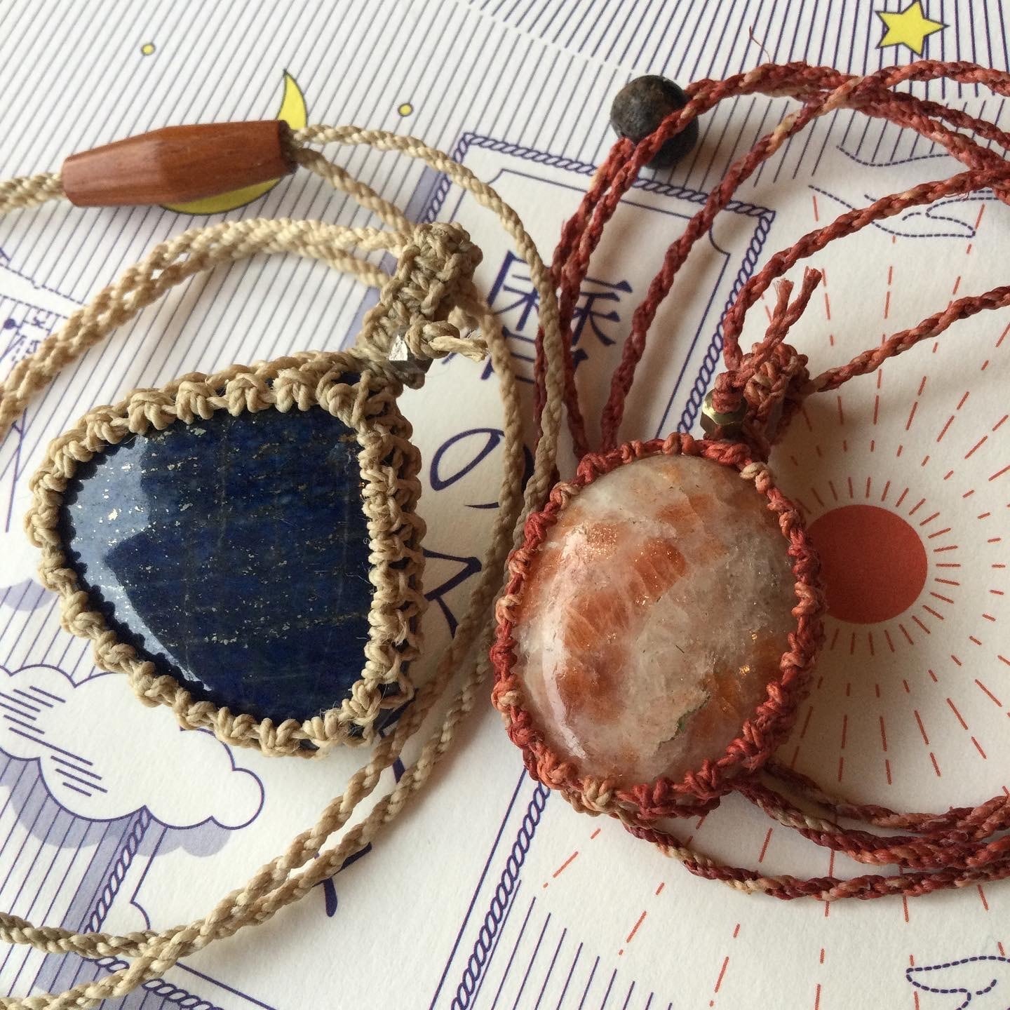 ラピスラズリをナチュラル精麻でマクラメしました♪
